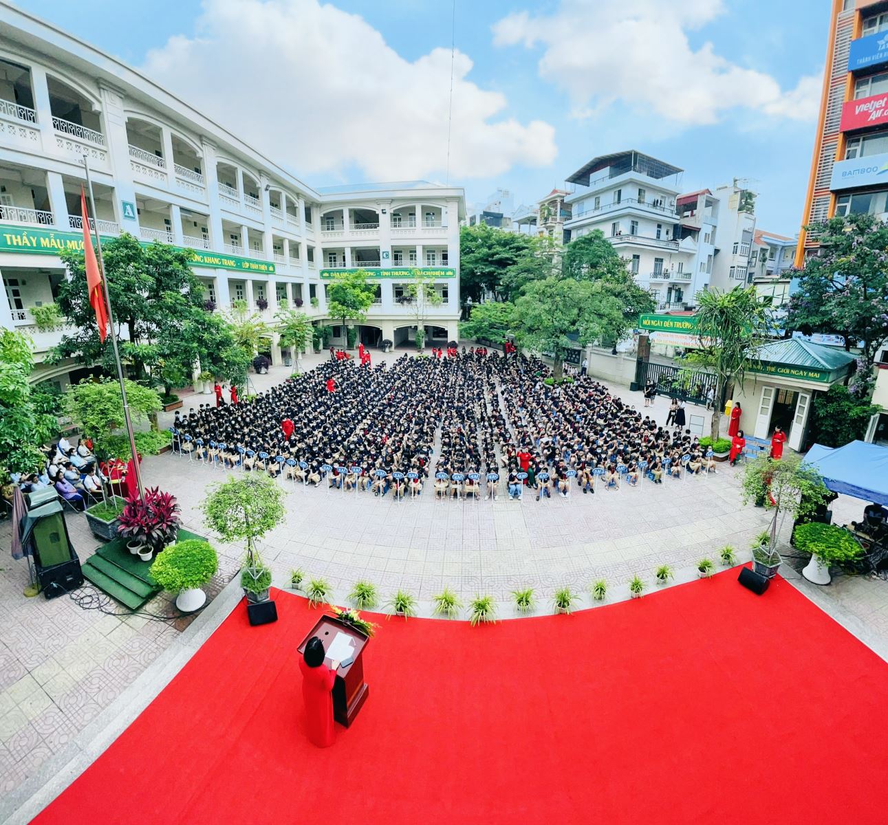 Lễ tổng kết năm nay có ý nghĩa rất quan trọng đối với học sinh toàn trường và đặc biệt là với các cô cậu học trò cuối cấp vì đây là khoảng thời gian để thầy trò, bạn bè gặp gỡ nhau và lưu lại những kỷ niệm đẹp của tuổi học trò trước khi rời xa mái trường thân yêu. Trước đó, do diễn biến phức tạp của bệnh dịch Covid-19 nên các em học sinh đã phải nghỉ học trực tiếp và tham gia học trực tuyến dài. Vì vậy, buổi lễ Bế giảng năm học này sẽ là dấu ấn khó phai với các cô cậu học trò vì vừa mới được đi học trực tiếp trở lại gần hai tháng mà bây giờ đã đến giờ phút chia tay!