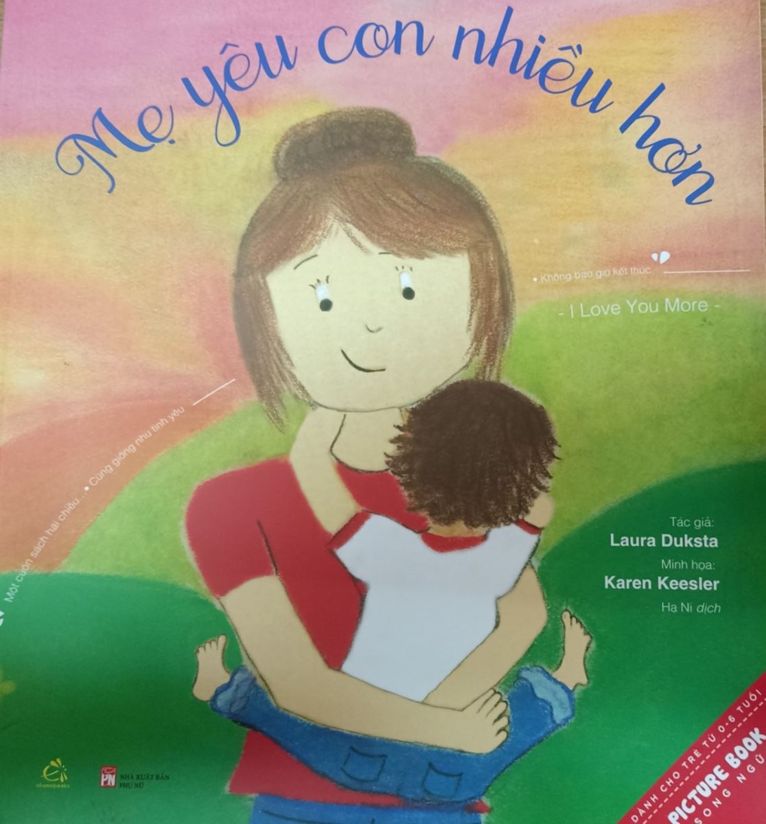 Nếu bạn đang tìm một cuốn sách để bồi dưỡng tình yêu của mẹ và con thì không thể bỏ qua bộ 2 tác phẩm song ngữ “Mẹ yêu con nhiều hơn, con yêu mẹ nhiều hơn” của tác giả Laura Duksta, được minh họa bởi Karren Keesler được nhà xuất bản Phụ nữ ấn hành năm 2019 với khổ sách 23.4cm x 26.6cm.