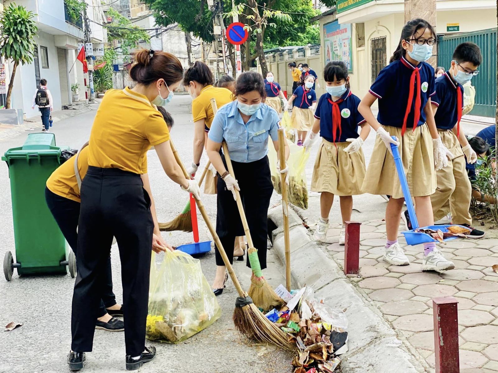 Chiều thứ sáu hàng tuần, vào tiết hoạt động tập thể cuối tuần, CBGVNV, Chi đoàn nhà trường, BCH liên đội và HS các lớp luôn phiên tham gia tổng vệ sinh khu vực vỉa hè ngoài cổng trường. Mỗi đội viên, nhi đồng sẽ là một tuyên truyền viên tích cực để vận động mọi người cùng chung tay góp sức vì mục tiêu xây dựng một môi trường xanh - sạch - đẹp. Thông điệp các em nhắn gửi đến mọi người là